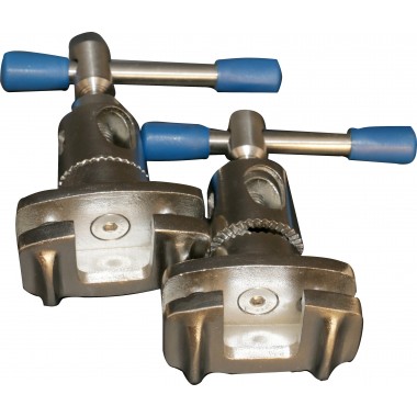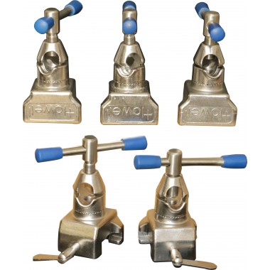 Made of stainless steel; ideal for mounting accessories that have round posts anywhere along table side rail; 360 degree radial adjustment; suitable for rods of 15mm-18mm diameters; simultaneous locking of the accessory and of the clamp to the side rail